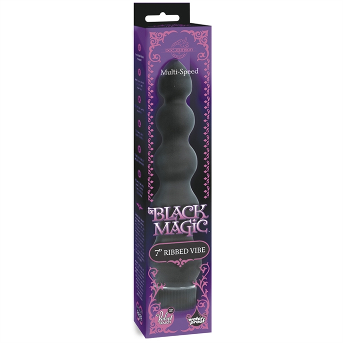 Are you ready for the ultimate in ecstasy? The Black Magic Ribbed Vibe provides powerful multi-speed sensations for clitoral stimulation, g-spot pleasure, and anal play. This vibrator is majestically long and rippled, and made of luxurious velvet touch material. The Black Magic Ribbed Vibe will serve you anywhere you desire — it’s waterproof, and virtually silent even at full power! Bring a little Black Magic into your bedroom tonight.
